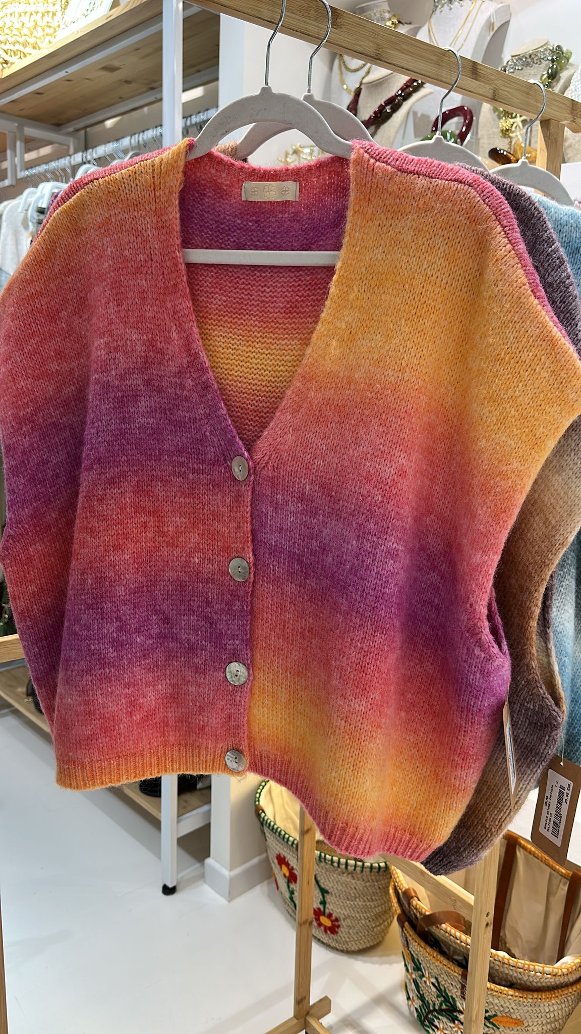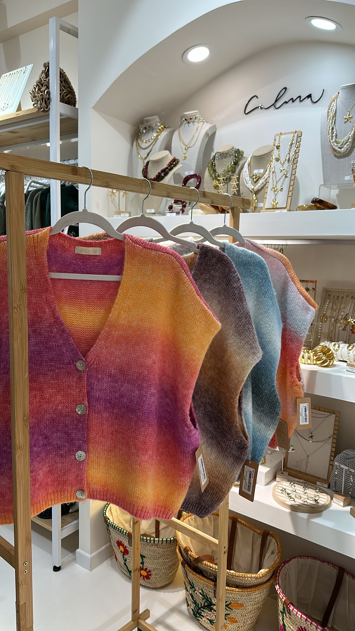 Hay prendas que tienen el poder de cambiarte el ánimo, y nuestro chaleco de punto con efecto ombré es, sin duda, una de ellas. En un mundo de tonos neutros, apostar por una explosión de color degradado es la declaración de estilo más potente del 2026. Este chaleco no es solo una capa más de ropa; es una pieza de punto artesanal con una textura tan suave y gustosa que no querrás quitártelo en todo el día. ☁️💖