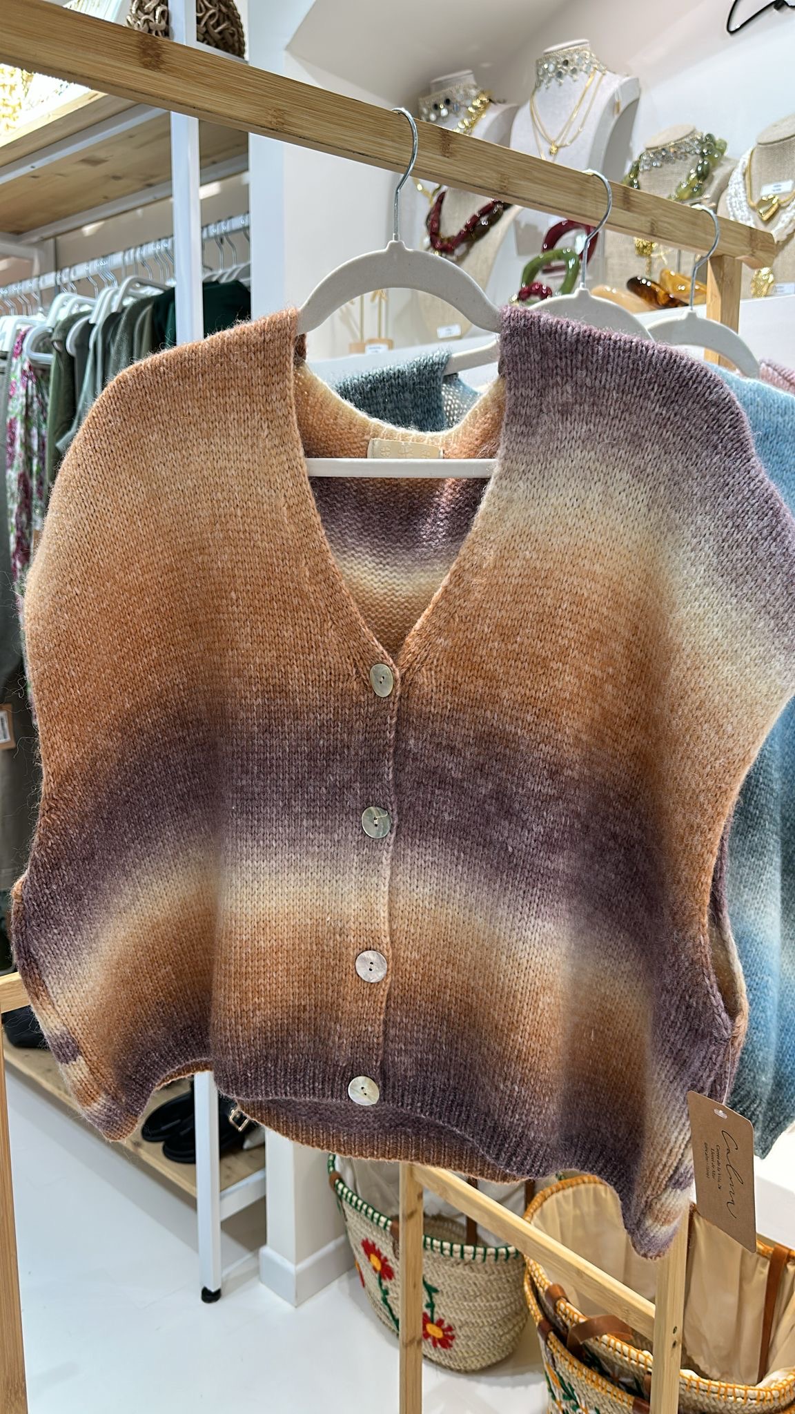 El arte del color en tu armario: Chaleco de punto multicolor con botones nacarados 🎨