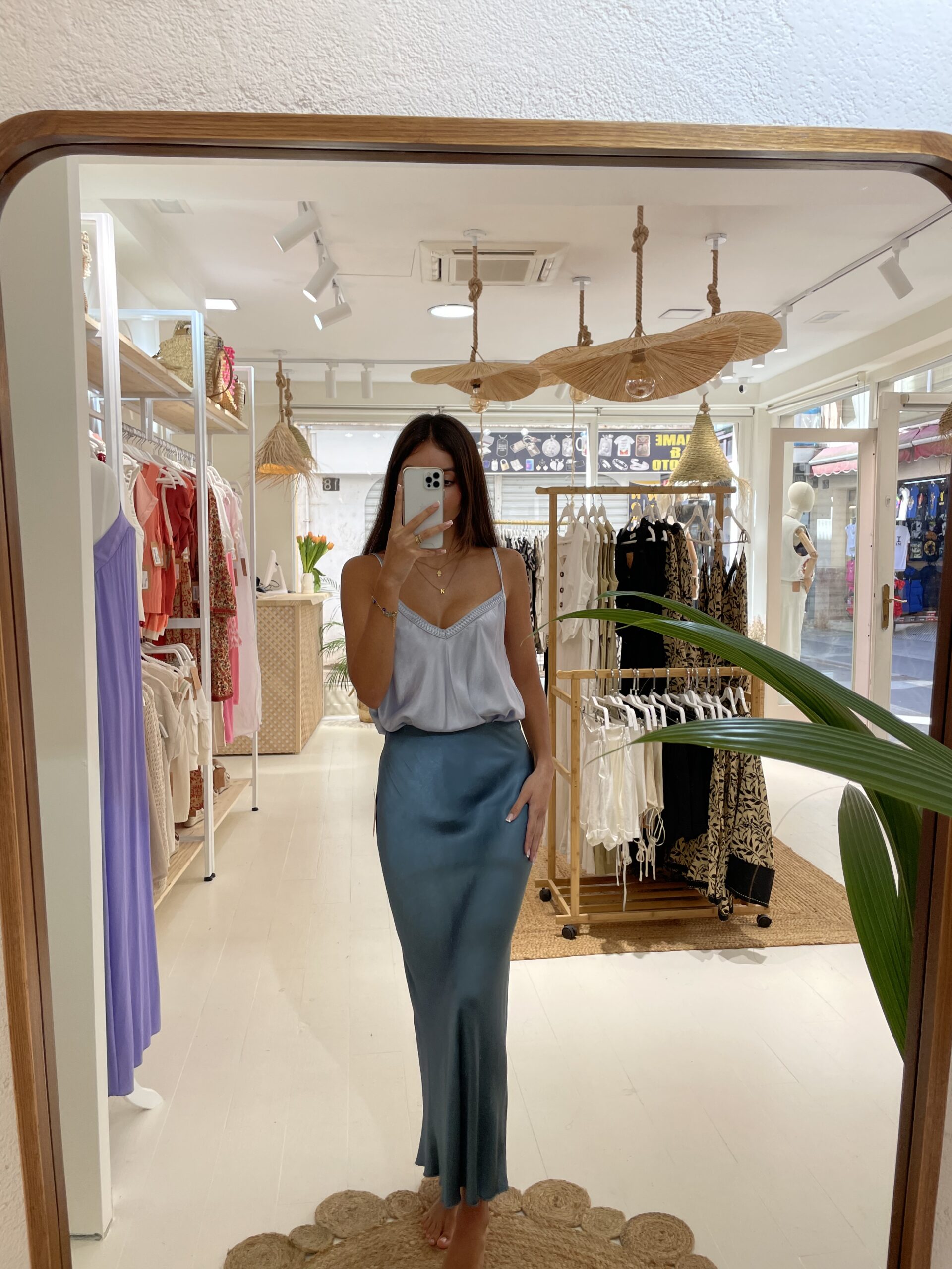 Combínalo con sandalias planas y bolsos de rafia para acentuar su estilo boho chic.